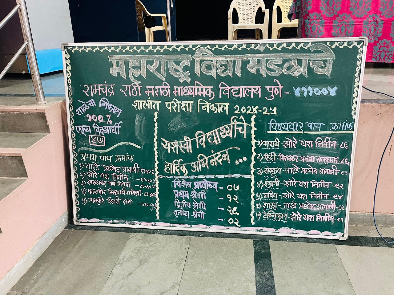 Ramchandra Rathi Marathi Medium School runs successfully parallel to other institutions of M.V.M. The focus of our school is to create an environment which helps the overall development of a child and thus create a capable future generation. The school which is now on the verge of celebrating 75 years is successfully leaving its prints and giving out great graduates to society. The graduates of the school are a part of different sectors and fields and are a feather in the cap of the school.